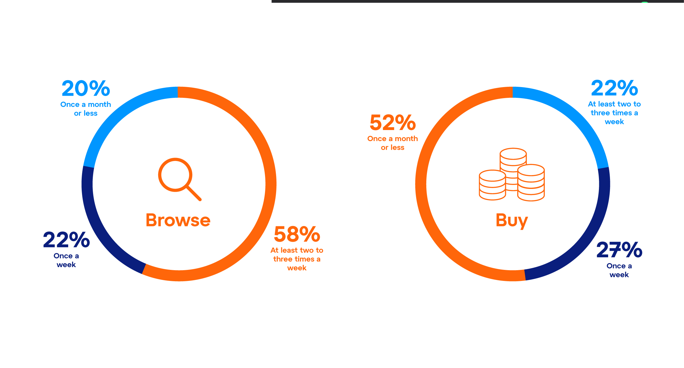 Generacija Z in Milenijci ostajajo najaktivnejši spletni kupci. 52% Generacije Z in 59% Milenijcev kupuje online vsaj enkrat tedensko, večina trgovcev pa opaža trend, da se ta odstotek iz leta v leto povečuje. A ne misliti, da so Generacija X in Baby Boomerji na drugi strani neaktivni, saj jih 47% (Gen X) in 32% (Baby Boomerjev) še vedno kupuje na tedenski ravni. Manj kot vodilni “Z” in “Milenciji”, a še vedno dovolj močna publiko z veliko kupno močjo, ki je ne smete zanemariti.