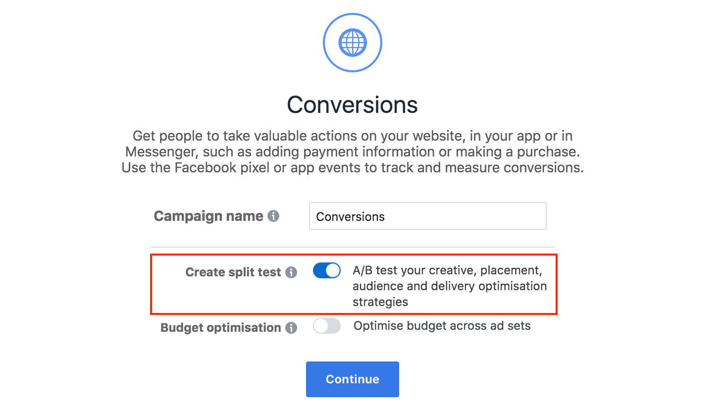 Že poznate funkcijo, ki jo je Facebook predstavil v upravitelju oglasov, in vam omogoča izvajanje A/B testov? Nastavite lahko proračun na nivoju kampanje, nato pa pripravite različna občinstva (oglasne sete), ki bodo med sabo ‘tekmovala’. Facebook algoritem bo kmalu prepoznal, katera oglasna skupina ima boljše rezultate in bo vanjo usmeril večino proračuna.