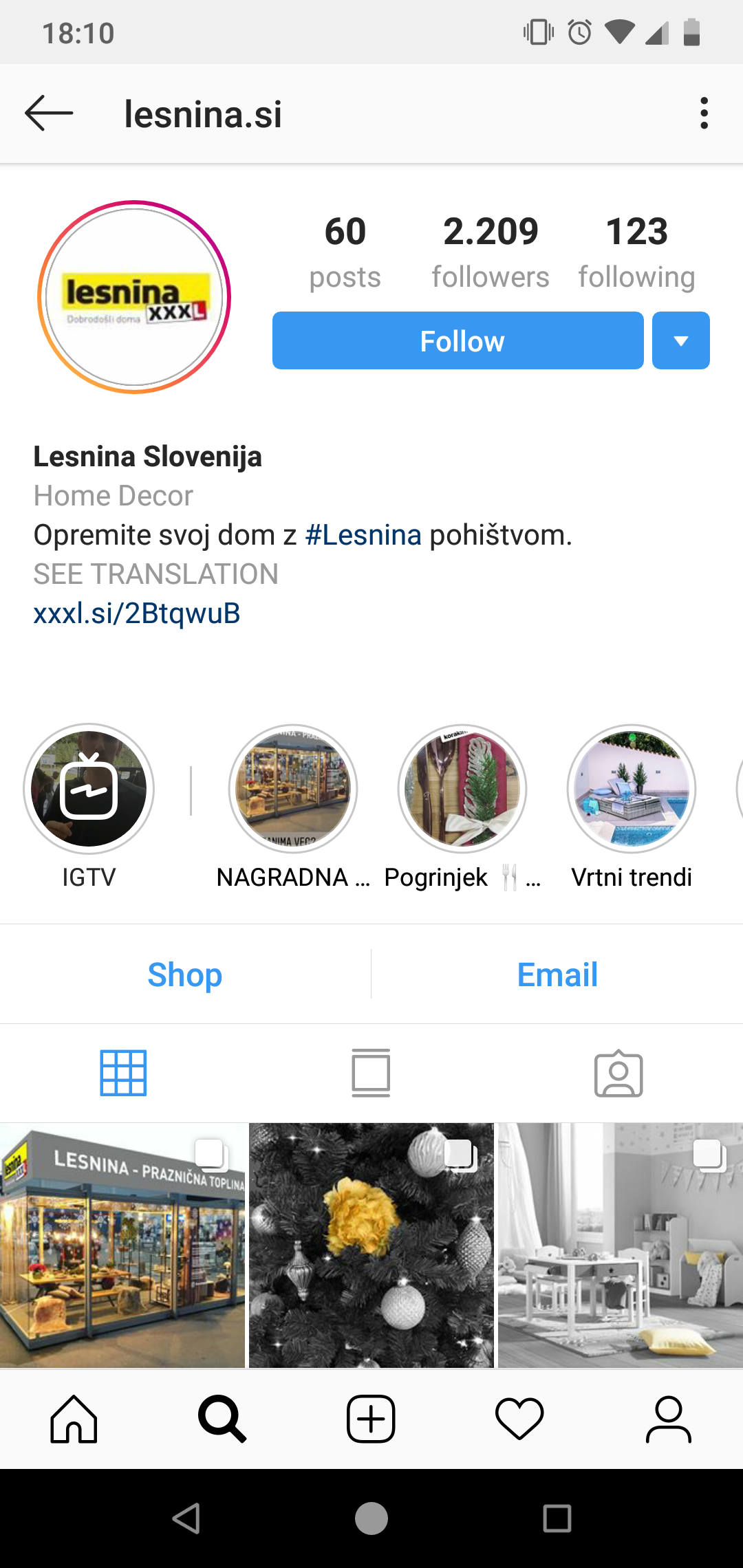 Izpostavljene objave se prikažejo zbirno, vsaka objava pa ima ikono za nakup, kar še dodatno olajša pot od odkritja izdelka do nakupa.